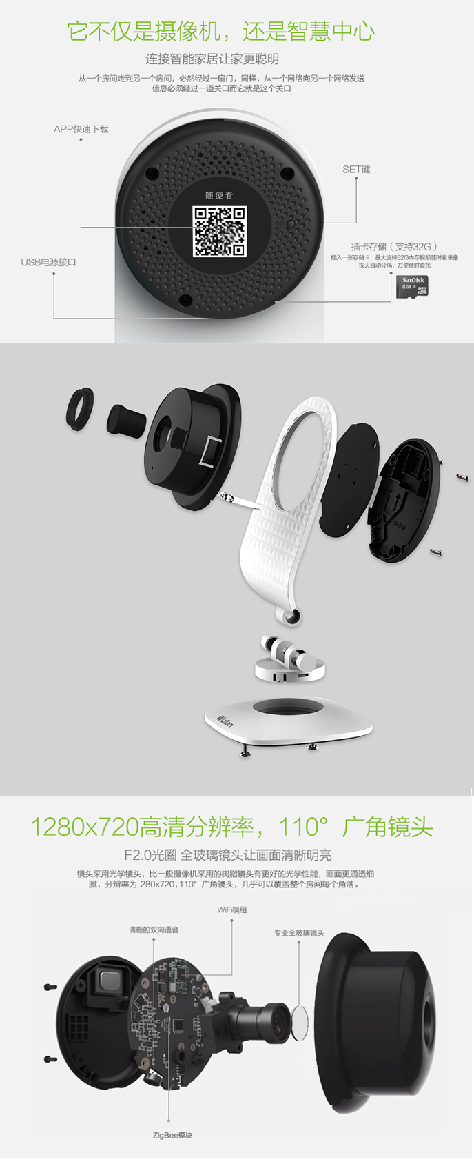 不僅是攝像機,更是智能家居的主機,除傳統網路攝像機的所有功能外,更可添加進智慧家居軟體,不管使用者身處何方,都能隨時瞭解家中情況,而且畫面更加清晰。